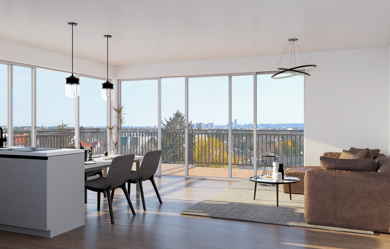 Cheers darling, ich bin der HUGO. Nicht der Sommerspritzer, sondern ein 135 m² Penthouse. Man nehme eine 50 m² Terrasse mit Rundumblick bis runter nach Wien, gemixt mit einer Wohnküche mit großzügiger Fensterfront, Geschüttelt mit zwei Schlafzimmern, zwei Badezimmern und einem Grundriss, der einfach funktioniert. Gerührt mit dem Speiselift der die Küche direkt mit dem Rooftop verbindet als krönendem Highlight, verfeinert mit den purem Wow‑Effekt – und fertig ist der Architekten‑Cocktail. Eine Kostprobe gefällig? Dann sichere dir einen Besichtigungstermin mit Christian & Max.